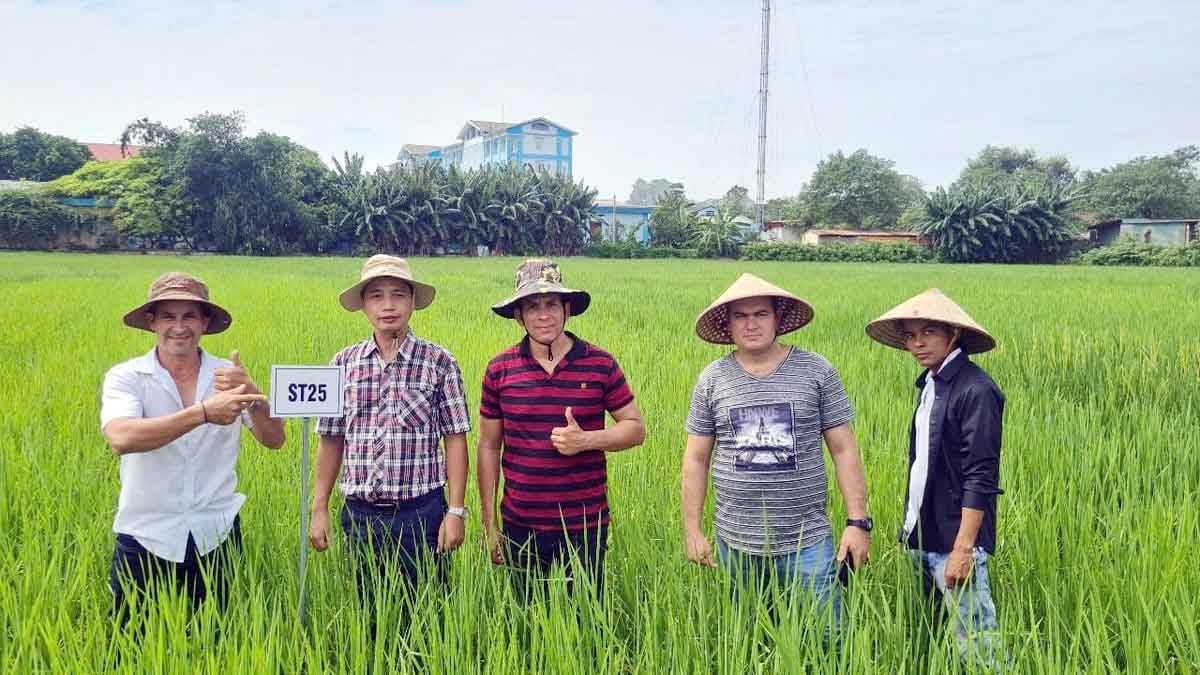 Expertos cubanos visitan un campo de arroz en Vietnam. (Foto: nongnghiepmoitruong.vn) |