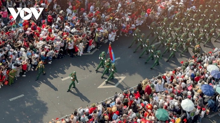 En Ciudad Ho Chi Minh, el 30 de abril de 2025, decenas de miles de personas siguen la gran parada y desfile cívico-militar a ambos lados de las vías por donde pasan los planteles militares. |