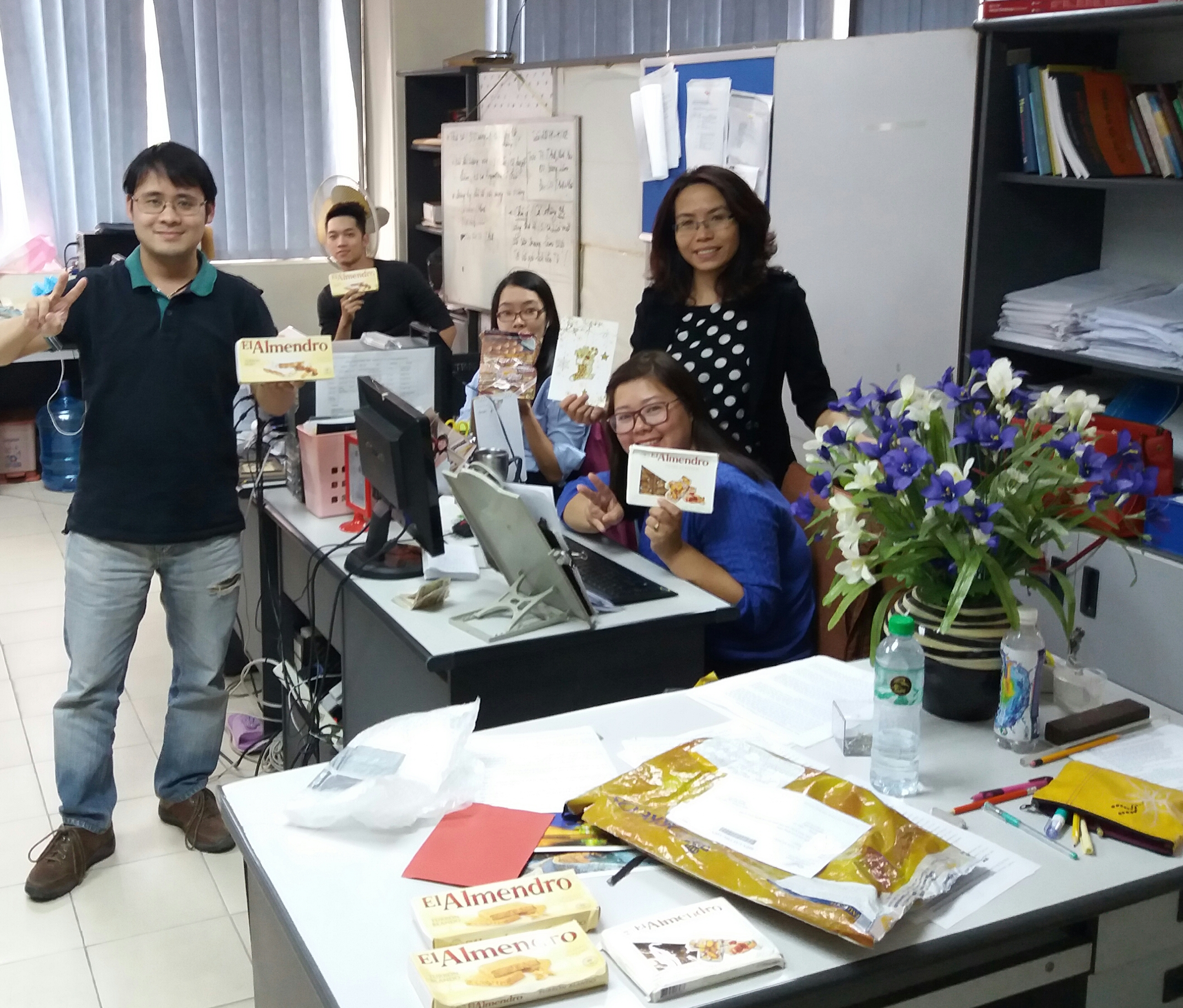 Miembros de la Sección en español de VOV Mundo, a la llegada del envío de Navidad de José Ignacio Cos Lezama