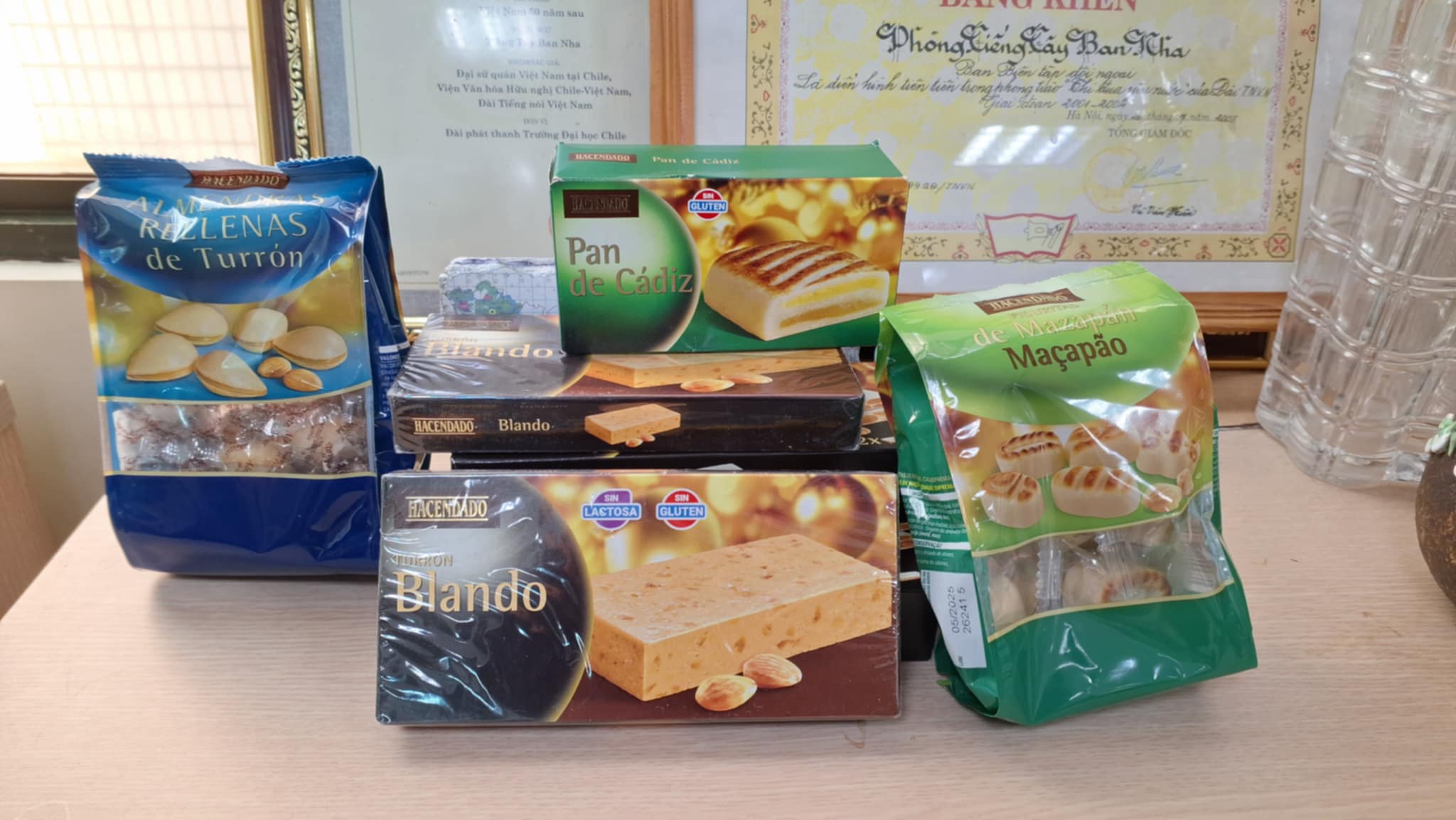 Alicia: El lunes pasado llegó a nuestra oficina desde España un paquete, que como decimos entre nosotros, está cargado de afecto. Es un envío preparado por la pareja de José Ignacio Cos Lezama y su esposa Liliane, residente en la ciudad de Bilbao, que incluye especialidades de España, entre otras, turrones duros y blandos, pan de Cádiz, rellenas de turrón… Como ya es habitual, todos los años en ocasión de Navidad y Año Nuevo, José tiene con nosotros este tierno gesto, por lo que estamos sumamente honrados y agradecidos. Hemos compartido este 25 de diciembre los dulces con los colegas de otras secciones de VOV5, orgullosos de tener a seguidores tan especiales.