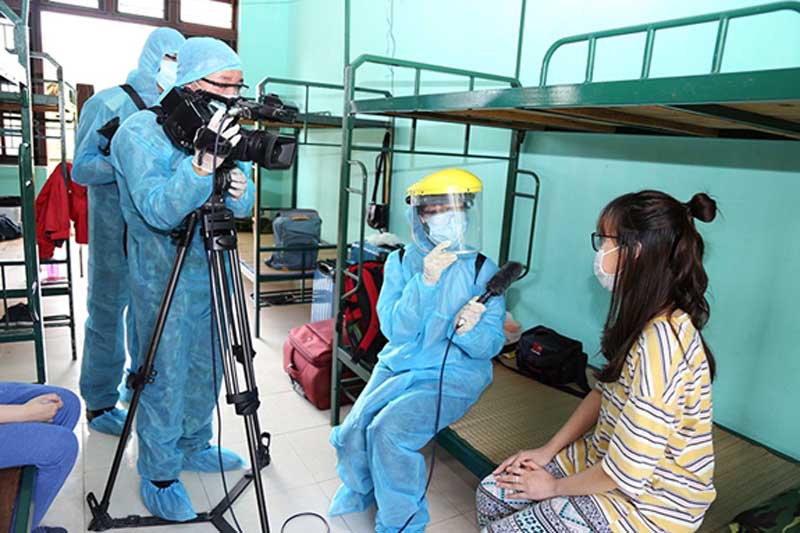 Periodistas vietnamitas trabajan en el contexto del covid-19. (Foto: qdnd.vn) |
