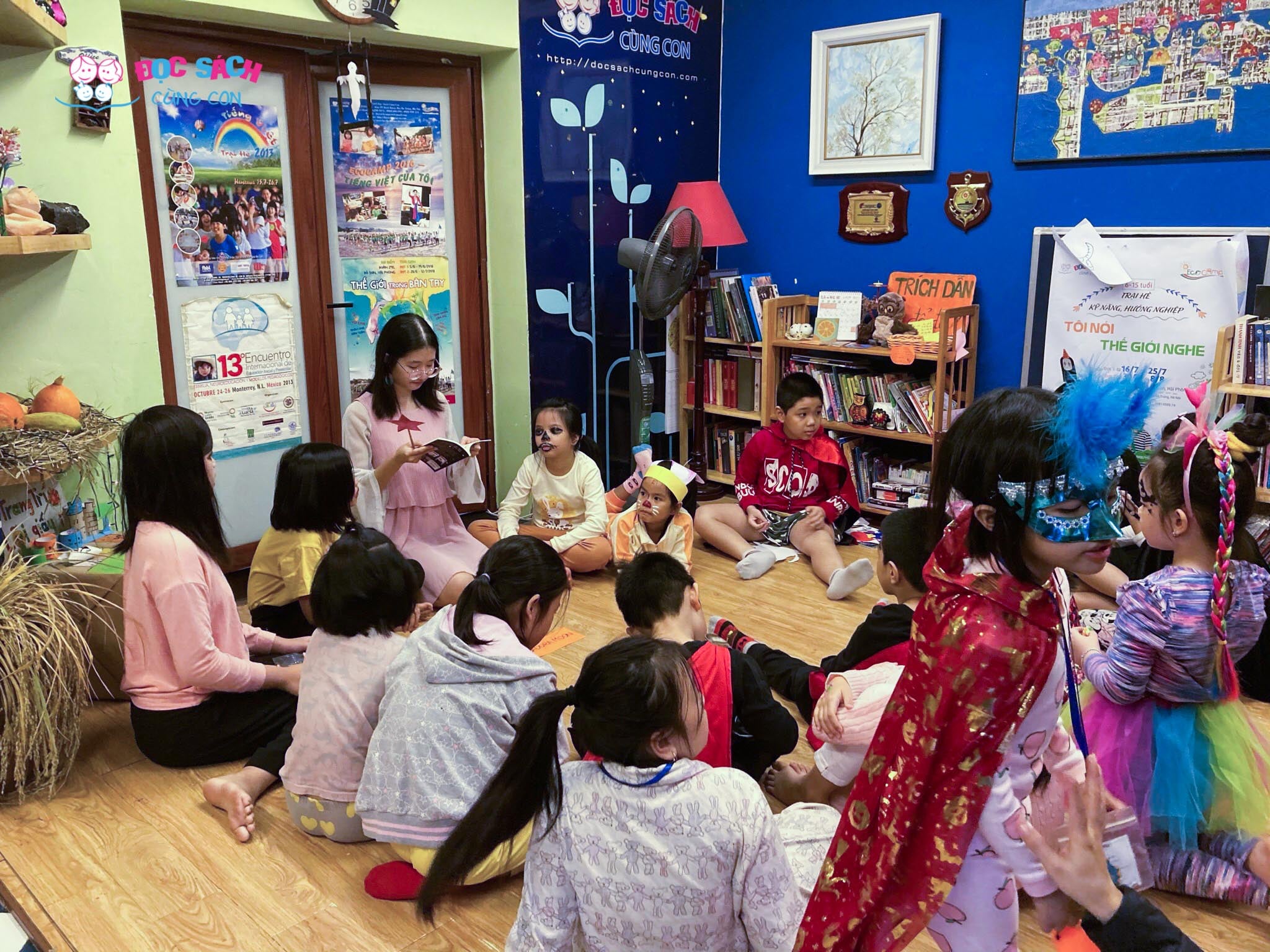 Una maestra está leyendo un libro a niños en la sala principal del club en la calle de Le Thanh Nghi, Hanói (Foto: FB del club) |