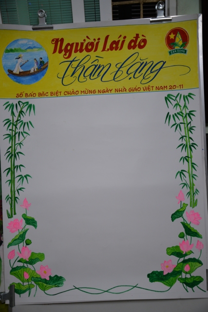 “Cada año cuando llega el Día Nacional del Maestro, mi colegio realiza muchas actividades, de ellas es imprescindible el concurso de periódicos murales. Para mí, este tipo de publicación debe ser dibujada a mano en lugar de ser impresa con máquinas para preservar una buena tradición y expresar sinceramente nuestros sentimientos hacia los profesores. Por esta razón, mi clase siempre solicita al señor Quynh para este trabajo.”