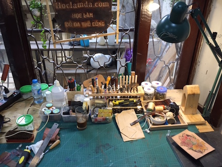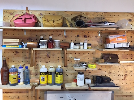 Un rincón de Dolio lleno de instrumentos para crear productos de cuero