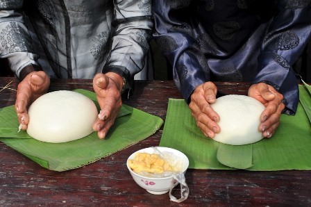 Pham Thi Toan es una de los participantes más activos en la festividad. Para ella, la preparación del “banh day” consta de tres pasos importantes: cocinar el arroz, amasarlo y darle forma. Frecuentemente ella se encarga de la primera fase. Dijo que las tortas para ofrendar a la Diosa Madre tienen que ser grandes, pesadas y blancas. Por esta razón, se necesitan de 2 a 4 kilógramos de arroz para hacer cada una y se deben seleccionar los granos de alta calidad y ser muy cuidadoso en la cocina. Pham Thi Toan agregó: “Primero, elijo el arroz pegajoso más sabroso. Luego, lo descascaro, limpio y saturo con agua dos horas antes de cocinarlo al vapor por 25 minutos. Si este plazo se prolonga más, la masa queda muy fláccida y complica los siguientes pasos.”
