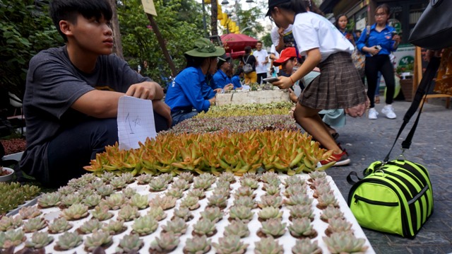 Al llegar al evento “Cambiar libros por echeverias y cactus”, un estudiante voluntario anima a los asistentes a unirse con un buen corazón por el medio ambiente, esperando contribuir activamente a la reducción de los problemas ambientales y minimizar los impactos negativos del ser humano en el entorno. Hoang Quy Binh y su proyecto Greenlife extendieron este mensaje a muchas personas para crear conciencia en ellas sobre la urgencia de proteger el entorno. ¿Y ustedes, ya entienden por qué este proyecto es tan querido por los jóvenes y ciudadanos en Hanói?