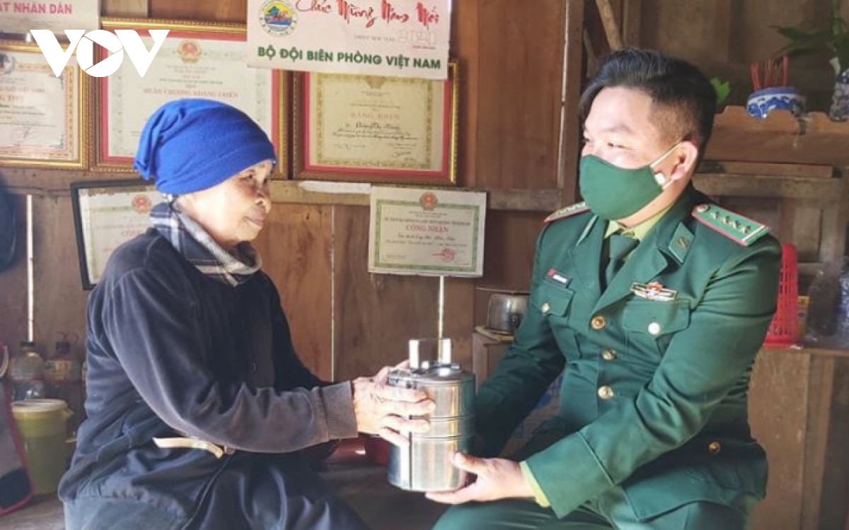 Todos los días, antes de cada comida, los soldados del puesto de Guardia Fronteriza de Nam Giang llevan una porción a la señora Hien Nhia, radicada en la aldea de Dac Ooc, de la comuna de La Dee. Ella recibe el mismo plato que se sirve en el puesto, que contiene arroz, carne, pescado, legumbres y caldo de calabaza. La mujer vive sola en una pequeña casa de unos 20 metros cuadrados. Es uno de los hogares que se encuentran en una situación particularmente difícil en esta localidad. Los guardafronteras, además de cuidar a la anciana cubriendo sus necesidades más fundamentales, en los días previos al Año Nuevo Lunar del Tigre, le ayudan a limpiar la casa y cuidar su pequeño huerto. La señora Hien Nhia contó que la vivienda en que reside fue erigida por los mismos soldados de Nam Giang. En los días próximos al festejo del Tet, que este año caerá en los días del 29 de enero al 6 de febrero, la anciana recibió presentes y consultas y tratamientos médicos gratis. Las atenciones y el afecto de los uniformados alientan a los ancianos solitarios como ella en esta zona montañosa fronteriza. La mujer expresó emocionada: “Los soldados me ayudan en muchas cosas, comenzando por las comidas diarias. Sus gestos me conmueven mucho. Lo hacen desde hace cinco años. Durante las festividades del Tet me visitan con frecuencia. Me siento muy agradecida”.