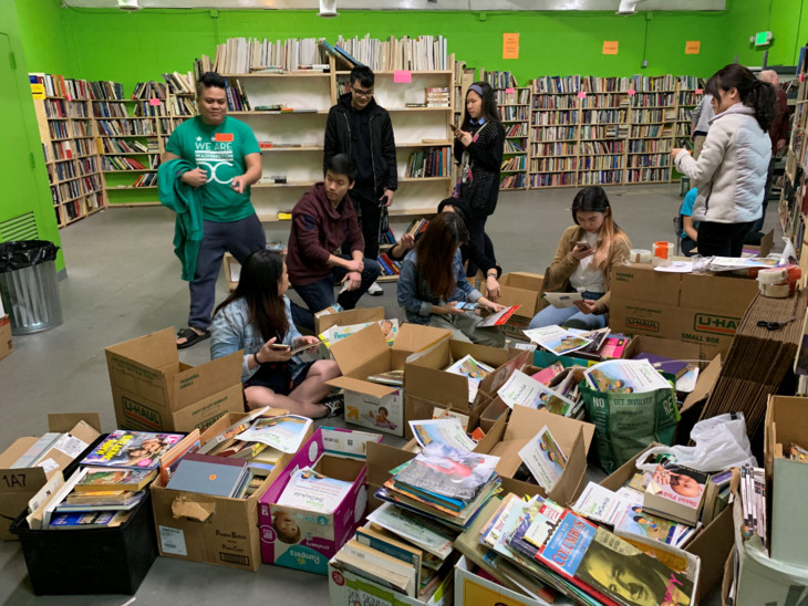 Domingo en la ciudad de Baltimore, estado de Pennsylvania. Estamos en un almacén de libros, junto con un grupo de jóvenes y estudiantes vietnamitas en Estados Unidos, enfrascados en buscar textos para niños entre los miles que se guardan en el local. Ellos escanean el código de cada uno para facilitar la gestión de datos, y luego los ponen en cajas de cartón con etiquetas y todas las instrucciones necesarias.