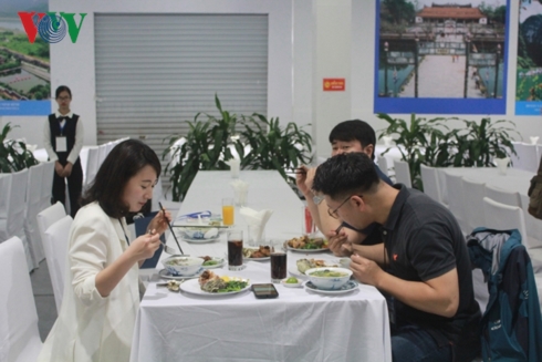 Cautivados por las comidas servidas en el Centro de Prensa Internacional, los periodistas fueron a los restaurantes y tenderetes en el casco antiguo de Hanói para experimentar la cultura gastronómica de Vietnam grabando y haciendo reportajes al respecto.