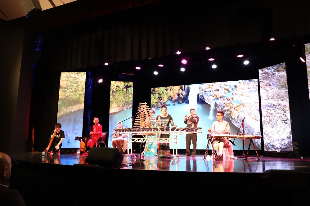 Una actuación con el didgeridoo y los instrumentos musicales tradicionales de Vietnam.