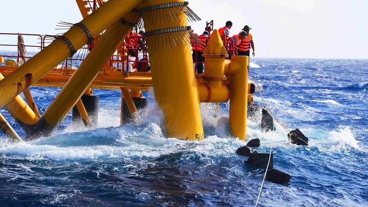 La plataforma DK1/2, construida sobre el arrecife de Phuc Tan, estaba ante sus ojos, pero tras dar varias vueltas el barco KN261 no encontró la manera de acercarse más para subir las mercancías debido a las grandes olas. La situación obligó al vicepatrón de la embarcación Hoang Thanh Hop a tomar una decisión: transferir las mercancías por cables y las felicitaciones del Tet a través de la radio de comunicación. Thanh Hop explicó: “Las plataformas de este tipo son construidas sobre arrecifes, cada una con sus propias características de posición y topografía, donde los vientos y las corrientes también varían, sin contar el cambio de nivel del agua durante el día. Estamos en la temporada del monzón del noreste, cuando los vientos alcanzan los niveles de 5 a 7, y esto impide a los barcos acercarse a las plataformas de modo normal por atraque o con canoas. Así que para garantizar la seguridad, la única forma de entregar regalos es por cable”.