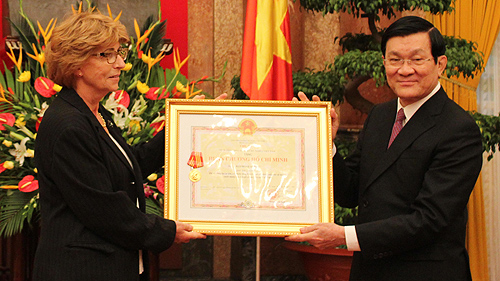 ![]() Elisabeth recibe la Orden Ho Chi Minh, otorgada por el expresidente de Vietnam, Truong Tan Sang, en honor de su padre