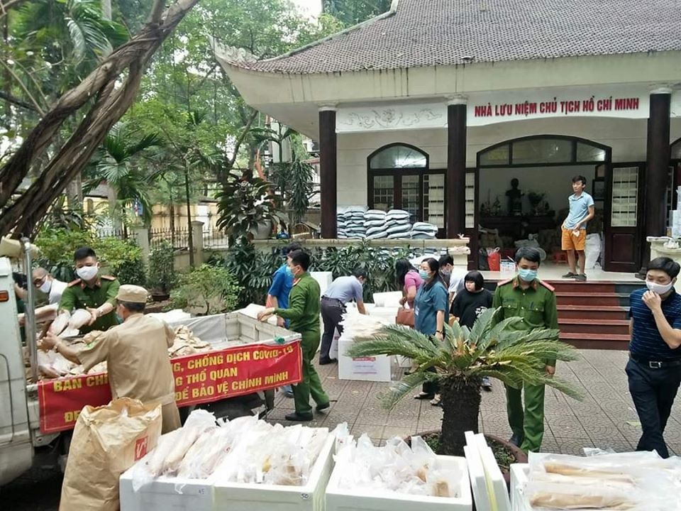 La Casa Conmemorativa al presidente Ho Chi Minh en el barrio de Kim Lien, distrito de Dong Da, Hanói, sirve como almacén de alimentos del programa "Tómalo si lo necesitas" (Foto: Huy Khoi)