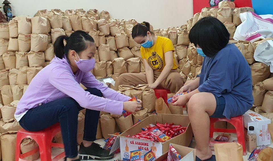 Voluntarios ayudan a preparar paquetes alimentarios (Foto: Huy Khoi)