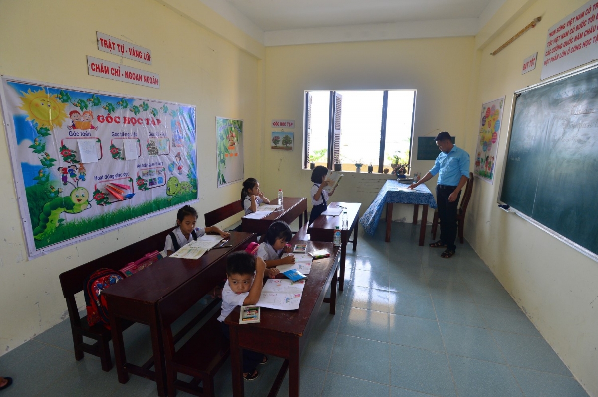 En el interior de una clase en la comuna insular de Sinh Ton (Foto: baohaiquan.com.vn) |