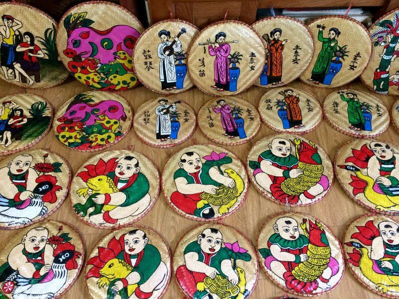 En una habitación de 30 metros cuadrados de una casa de 4 pisos ubicada en el distrito de Bac Tu Liem, Hanói, Nguyen Ngoc Diep, de 27 años de edad, está enfrascada en el dibujo de una colorida imagen de un mercado rural sobre el revés de una bandeja redonda tejida con bambú, un instrumento que está estrechamente relacionado con la vida cotidiana de los agricultores vietnamitas en el delta del norte del país. Alrededor de la joven, se encuentran numerosas bandejas con diámetros de 20 a 75 centímetros, sobre las cuales dibuja paisajes campestres o chicas vestidas con el traje tradicional vietnamita, pero la mayoría de las pinturas siguen siendo las copias de los estilos de cuadros de Dong Ho y Hang Trong, los cuales solo se realizaban sobre papel, seda o tela. En un estante negro al lado de la pared, hay cajas de pintura azul, roja, amarilla, negra y blanca, junto con otras de plumas estilográficas. Acerca de la decisión de elegir este modelo de negocios, Ngoc Diep compartió: “Después de algunos estudios, descubrí que casi nadie se dedicaba a dibujar copias de cuadros de Dong Ho, pinturas de paisajes o retratos sobre bandejas de bambú, así que intenté desarrollar este modelo. En el mercado, estas categorías son principalmente imágenes impresas, por lo que sus productos no son elaborados de forma cuidadosa. A mi juicio, este es un campo potencial porque me permite llevar más fácilmente el arte tradicional a las personas de mi misma edad. Me alegra ser una de las primeras personas en hacer este trabajo”.