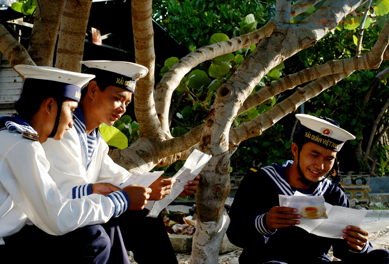 Soldados en el archipiélago de Truong Sa leen cartas de su familia
