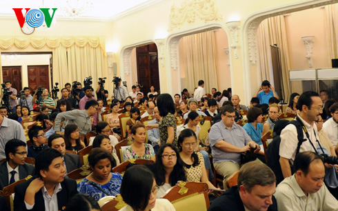 (VOVworld) – Vietnam ratifica en repetidas ocasiones su posición sobre los archipiélagos de Truong Sa y Hoang Sa en el Mar Oriental, así como su enérgico rechazo a las acciones erróneas y violatorias chinas en las aguas soberanas de este país indochino. Esta es la afirmación del vocero del Ministerio de Relaciones Exteriores de Vietnam, Le Hai Binh, en la rueda de prensa ordinaria del 26 de junio en Hanoi.
