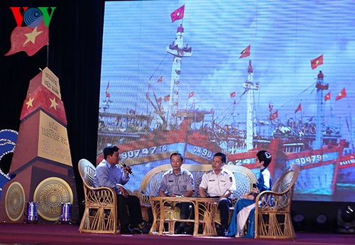 En el evento, representantes de las fuerzas de control de pesca y la policía marítima y algunos pescadores destacados intercambiaron con el público sobre las dificultades que han enfrentado para proteger la soberanía nacional, ante la instalación ilícita de la plataforma petrolífera Haiyang Shiyou 981 de China en la zona económica exclusiva y plataforma territorial del país.
