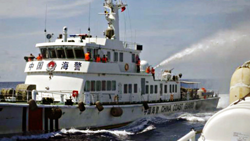 ![]() Barco de la policía marítima de China usa manguera antidisturbios para atacar al buque de fuerzas del orden de Vietnam en el Mar Oriental