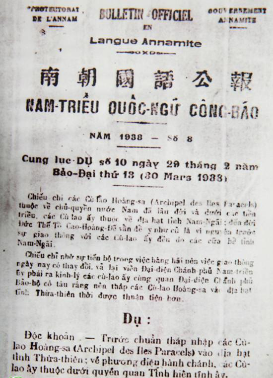 El profesor y doctor Nguyen Quang Ngoc, del Instituto de Vietnamología y Ciencia para el Desarrollo, dio a conocer que una vez asumida la gobernación del país, el rey Gia Long restableció las brigadas de patrulla de Hoang Sa y Bac Hai, que acometieron la vigilancia y el control en el Mar Oriental y al mismo tiempo participaron en las actividades comerciales en el mismo. El experto dijo: “El rey Gia Long fue el primer monarca que hizo una declaración explícita acerca de la soberanía nacional sobre los archipiélagos de Truong Sa y Hoang Sa en el Mar Oriental. Muchos misioneros, comerciantes, navegantes e historiadores afirmaron que fue el rey Gia Long quien mandó colocar la bandera nacional en Hoang Sa.”