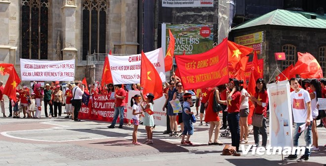 (VOVworld) – La comunidad vietnamita en Austria marchó el 6 de julio en calles principales de Viena para protestar contra la instalación de China de la plataforma petrolífera Haiyang Shiyou 981 en la zona económica exclusiva de Vietnam. Los manifestantes llevando banderas vietnamitas, cantando el himno nacional y gritando consignas de rechazo en diversos idiomas, hicieron flujos de gente hacia la Embajada de China, cerca de la Plaza de Karrl. Durante su camino, también divulgaron 500 mapas que afirman la soberanía de Vietnam sobre los archipiélagos de Hoang Sa (Paracel) y Truong Sa (Spratly), además de movilizar firmas de participantes en una carta que se enviará a la Embajada de china en Viena, el secretario general de la ONU Ban Ki-moon y la Comisión de la ASEAN en Austria.