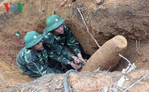 ![]() Soldados del Ejército Popular de Vietnam desactivan una bomba remanente después de la guerra