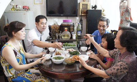 ![]() Después de un día de trabajo, hogares vietnamitas disfrutan conjuntamente una cena