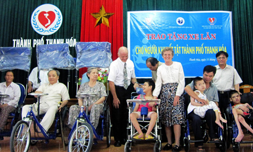 ![]() La Organización Internacional de Asistencia Humanitaria, en coordinación con la Asociación Protectora de Discapacitados y Niños Huérfanos de la provincia central de Thanh Hoa entrega sillas de ruedas para las personas necesitadas de la localidad (Foto: Tran Hang)