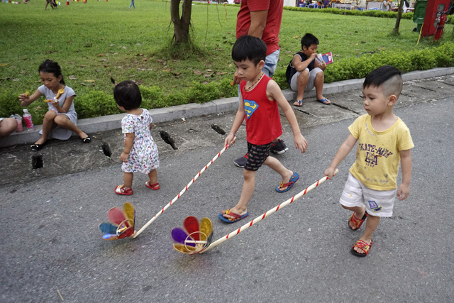 Además, los niños tienen la oportunidad de dialogar con los artesanos de juguetes populares, entre ellos, Vu Van Sinh, quien reveló: “Practico este oficio heredando la tradición de la familia. Nuestros productos tienen rasgos culturales de áreas rurales y son elaborados con instrumentos muy sencillos. En ocasión del Medio Otoño, suelo crear farolillos en forma de estrella y carpa. Habitualmente, un grupo de 30 o 40 niños participan en la procesión de estos objetos y después disfrutan juntos las comidas típicas de la festividad. Estas actividades han sido grabadas en la mente de la mayoría de los vietnamitas”.