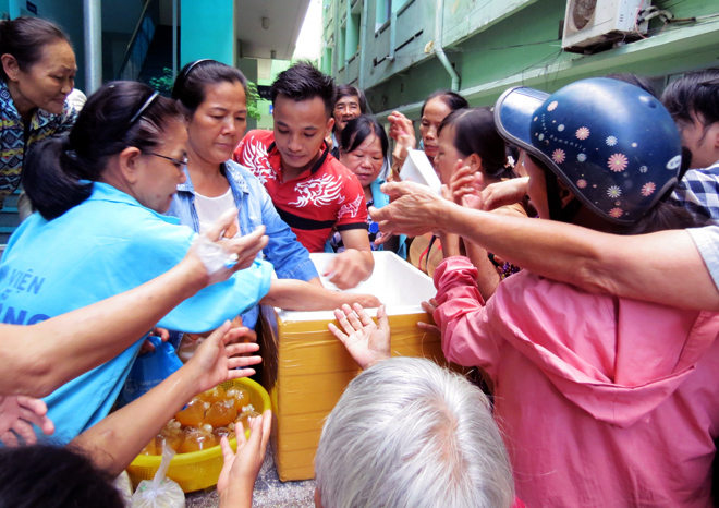 A las 4 de la tarde de cada viernes, envía más de 400 porciones de comidas al hospital de Da Nang. Informado de las actividades humanitarias de la señora Hoa, un director joven de una empresa decidió contribuir mensualmente con 2 millones de dongs (unos 95 dólares) para mantener la provisión de alimentos a los enfermos pobres. Cabe destacar también el caso de una madre y su hijo beneficiados de 300 dólares al mes, quienes donan un tercio de ese apoyo económico a otras personas más desafortunadas. En idéntico sentido, otro miembro del Grupo 1C, Nguyen Quang, de 65 años de edad, reveló que él y sus compañeros del equipo están dispuestos a apoyar con sus propios recursos a los necesitados. Al respecto dio a conocer: “Cuando la salud me lo permite presto apoyo a las personas más desafortunadas, considerándolo como mi propia felicidad. Pese a las dificultades, me alegro mucho al ver a la gente que hace cola en espera de sus porciones de comidas”.