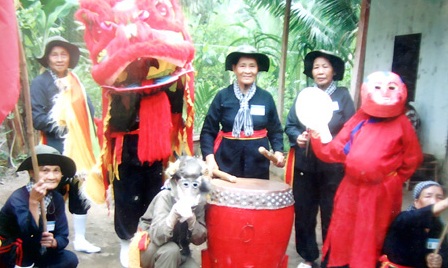 Comenzado en 1954, en etapa de residencia, el grupo de bailarinas de unicornio ofreció actuaciones cada vez que visitaba la comuna los cuadros y soldados. Aprovechaban la resonancia de batintines y las ovaciones del público para que los enemigos dejaran de prestar atención y poder ayudar a los combatientes a atravesar sanos y salvos los puestos militares. Lo interesante es que el equipo mantiene un número de 15 miembros, entre ellos, uno que toca tambor y el resto, mujeres de edad avanzada. Muchas de ellas son inválidas de guerra o esposas de mártires. En las funciones, cada miembro femenino lleva el atuendo tradicional “áo bà ba” (blusa de seda vietnamita), bufanda a cuadros, sombrero con ala en forma de bora, banda roja y amarilla . Hasta la fecha, 8 de ellas murieron y por eso, la Comisión administrativa del grupo presta mucha atención a la búsqueda de otros miembros para reemplazar a las bailarinas desaparecidas. Tran Thi Phuoc, jefa del equipo reveló: “Numerosas muchachas aspiran a ser miembros del grupo pero ahora tenemos suficientes bailarinas para mantener las actividades culturales y artísticas. Hay ocasiones en que algunas compañeras del equipo están ocupadas con sus faenas de la casa pero una vez les convocamos, están dispuestas a unirse a nosotros para participar. Nos hemos acostumbrado a estas actividades frecuentes y por lo tanto nos sentimos muy felices al poder interpretar para el público”.