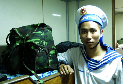 Vu Tuan Anh y su equipaje antes de irse a Truong Sa