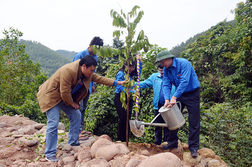 ![]() Los participantes de la campaña “Dai Phong” cultivan árboles a lo largo del camino homónimo