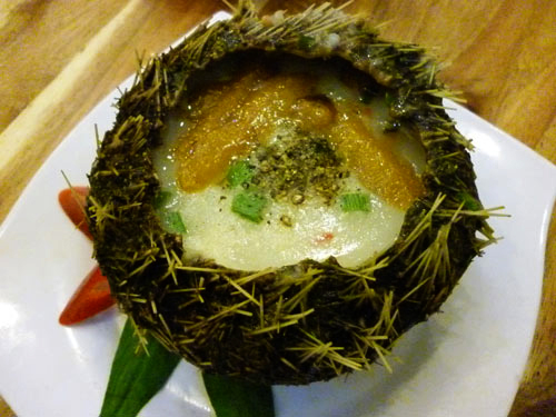 El manjar "cháo hum" (gachas de arroz con carne de erizo de mar)