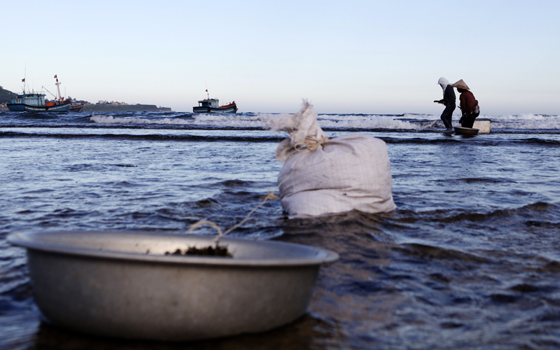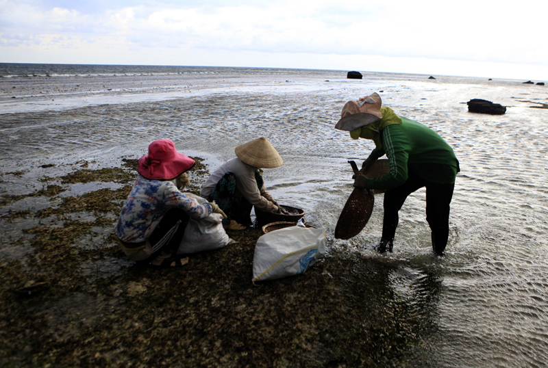 Mujeres recogen mariscos en la isla de Ly Son