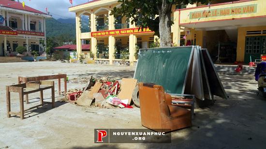 La escuela primaria 1, en la comuna de Quang Kim, del distrito de Bat Xat, fue una de las más afectadas por dicho desastre natural. Después de ser drenada, todo el patio y las aulas del primer piso fueron cubiertos con una gruesa del barro. Mientras, el suelo fue hundido gravemente y miles de libros y equipamientos didácticos en la biblioteca fueron destruidos. No obstante, ahora todo ha sido arreglado.