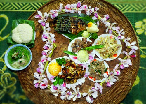 Uno de los platos predilectos de los miembros de la etnia Thai es la sopa de brotes de bambú, huesos de búfalo y flores de Bauhinia recogidas en la madrugada. Para preparar este manjar, se seleccionan, pelan y cortan al hilo los brotes de bambú frescos, además de machacar meticulosamente el arroz glutinoso. Después de contar con los ingredientes necesarios, las muchachas de la etnia Thai hierven a fuego lento los huesos de búfalo sazonándolos de modo adecuado y luego añaden brotes de bambú a la olla. Cuando están casi cocidos, agregan polvo de arroz, remueven exhaustivamente la sopa y esperan hasta que se ponga espesa para poder añadir flores de Bauhinia y cebolleta a fin de aumentar la fragancia de la comida. Quang Thi Chau, del poblado de Giang Lac, barrio de Quyet Thang, ciudad de Son La, comentó: “Después de recoger flores de Bauhinia, las muchachas Thai seleccionan y lavan los pétalos y pistilos, los cuales serán añadidos finalmente a la olla de sopa para evitar que se pongan pastosos. Las flores se agregan a la sopa de brotes de bambú y huesos de búfalo para producir sabores amargo, dulce, áspero y mantecoso del manjar”.