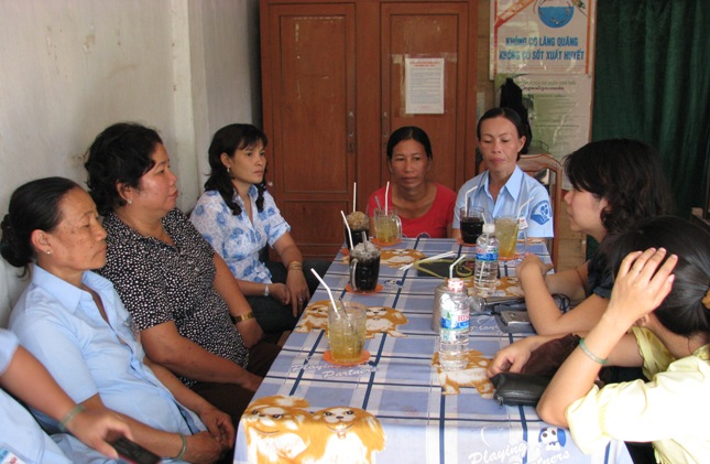Las mujeres de Tho Son, en el distrito de Hon Dat suelen reunirse para intercambiar experiencias sobre el desarrollo de la economía familiar