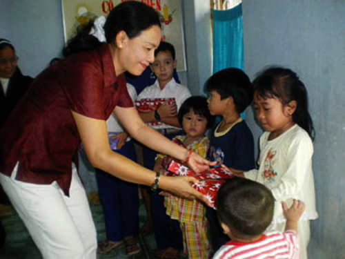 de la provincia de Phu Yen, Pham Thi Tuong Lai entrega regalos