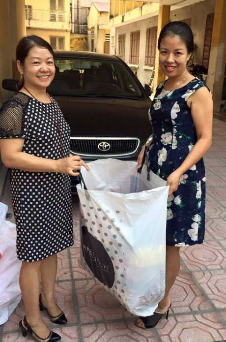 Se puede decir que dos mil dongs es solo un precio simbólico para consolar a las personas en condiciones extremas. Al principio E2k no podía encontrar un sitio adecuado para acumular y distribuir las donaciones. Luego, Vu Lan, una miembro del grupo, pidió a los administradores de su órgano, que es el Instituto de Materiales Medicinales, que le prestaran su patio. Desde entonces, esta mujer se ha encargado de recolectar las donaciones durante las horas laborales, y fuera de esas la ayudan guardianes del establecimiento. Vu Lan dijo: “Actualmente usamos este lugar, pero no es adecuado para nuestros propósitos. En el futuro pensamos alquilar otro en el mercado de Long Bien, donde se concentran muchos trabajadores.”
