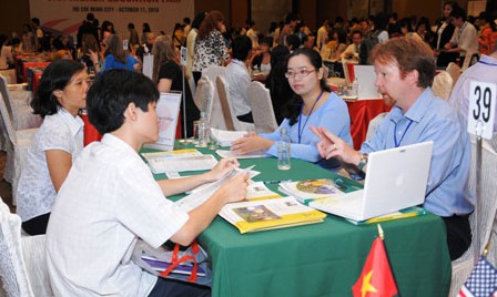 ![]() Alumnos vietnamitas conversan con expertos sobre los procedimientos para inscribirse en las universidades de Estados Unidos