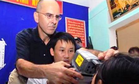 ![]() Un experto estadounidense esta ayudando a su colega vietnamita en el manejo de equipos médicos