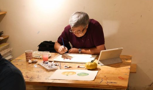 Visitamos esta clase especial en el número 30 de la calle de Nguyen Hong, distrito de Dong Da, Hanói, a las 4 de la tarde, cuando la sesión de dibujo de bodegones en acuarela había comenzado hacia una hora. En un espacio de aproximadamente 30 metros cuadrados, lleno de lienzos y paletas de colores, un joven instructor explicaba en detalle sobre la estructura de un cuadro y la combinación de colores. Alrededor de la mesa rectangular, los practicantes canosos escuchaban atentamente, y luego daban con avidez las primeras pinceladas.