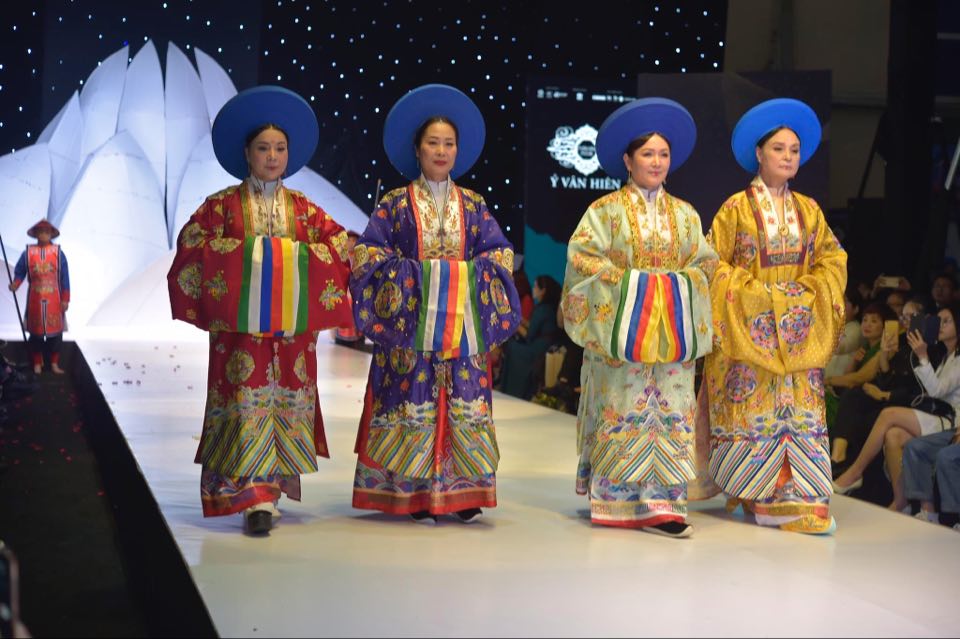 Traje tradicional "Nhat Binh" en pasarela. (Foto suministrada por la tienda Y Van Hien) |