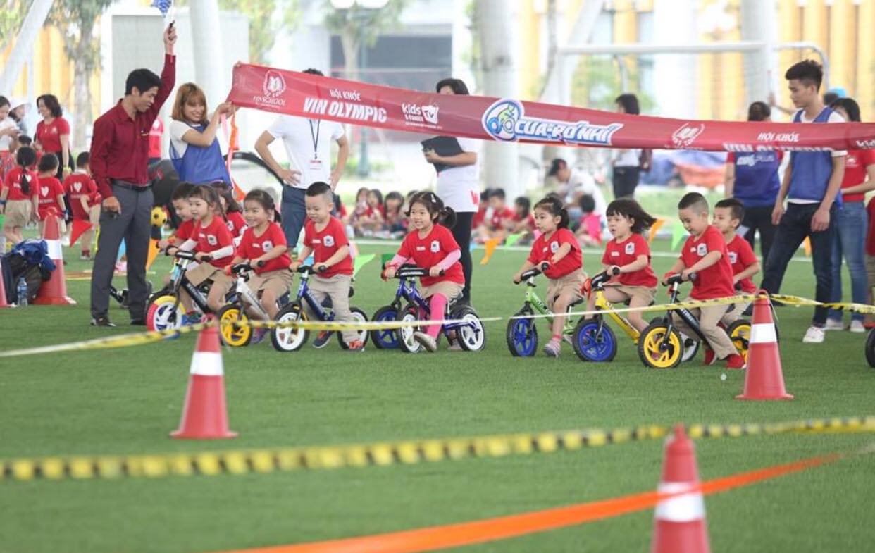 Un comentarista locuta la ronda final de la Copa Cruzee 2020, un concurso de bicicleta de equilibrio para los niños de uno a seis años de edad, celebrado la semana pasada en el estadio de Defensa Aérea y Antiaérea en la calle de Le Trong Tan, en Hanói. La competición de ocho “pequeños deportistas” se desarrolló en nueve carriles divididos a lo ancho del estadio. Los preescolares se sentaron en una bicicleta sin pedales, usando sus piernas para avanzar rápido y superar muchos obstáculos como verdaderos atletas profesionales, ocasionando una competición enérgica y atractiva. Ninguno mostró el más mínimo atisbo de darse por vencido antes de que llegara a la meta.