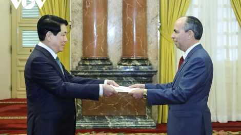 (VOVWORLD) - El presidente de Vietnam, Luong Cuong, recibió el jueves en Hanói a los embajadores de Cuba, Zimbabwe y Bolivia, quienes le presentaron las cartas credenciales para asumir sus misiones en el país.