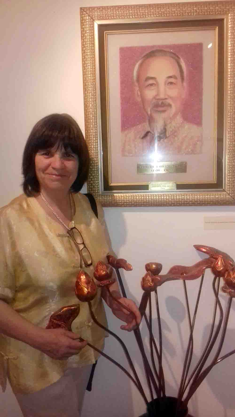 Patricia Abarzúa, presidenta del Instituto Chileno-Vietnamita de Cultura y Amistad, en la sede de la Asociación de Pintores y Escultores de Chile (APECH). (Fotografía de cortesía de la propia Patricia Abarzúa) |