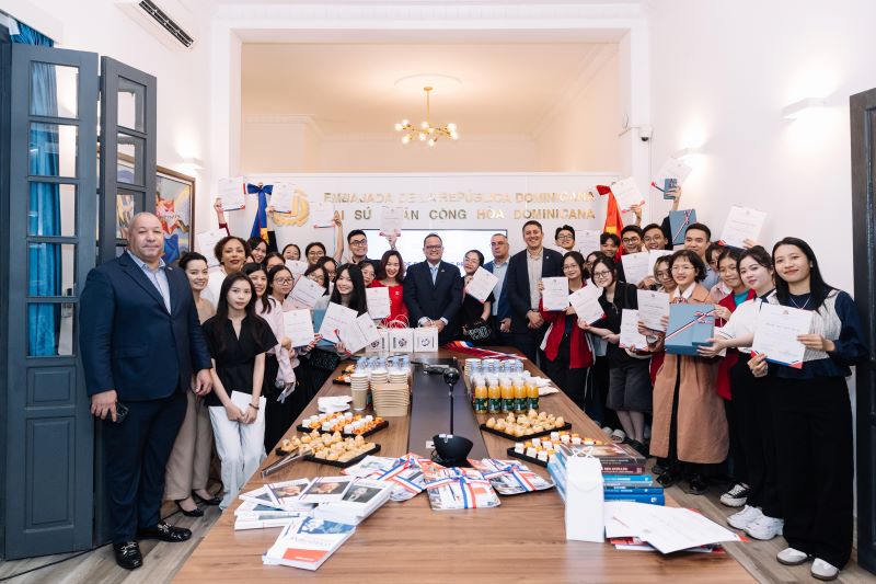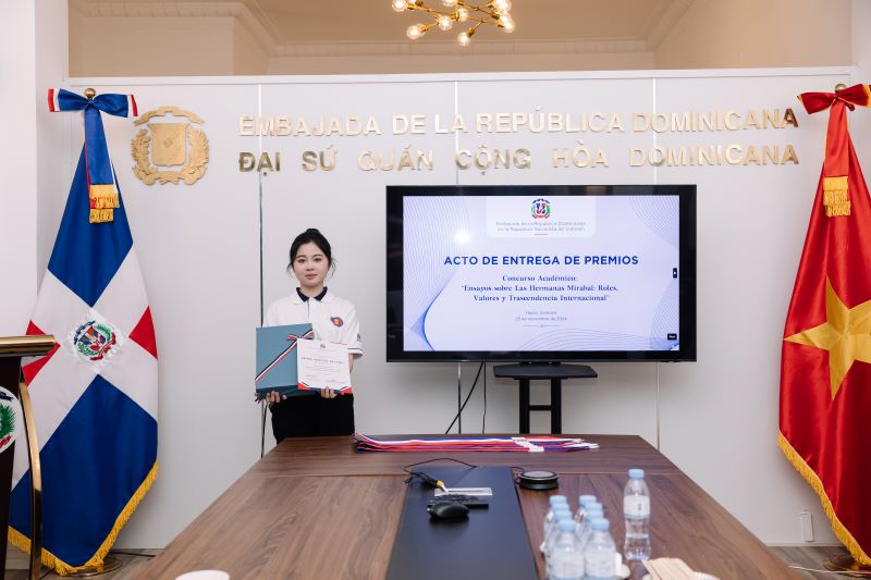Durante la ceremonia de premiación, celebrada recientemente en Hanói con motivo del Día Internacional de la Eliminación de la Violencia contra la Mujer (25 de noviembre), el embajador de la República Dominicana en Vietnam, Jaime Rodríguez, destacó la calidad de los ensayos preparados por los estudiantes de la Universidad Nacional de Hanói y de la Universidad de Ciencias Sociales y Humanidades de Ciudad Ho Chi Minh. Además, enfatizó que este tema es de gran relevancia para el país centroamericano.