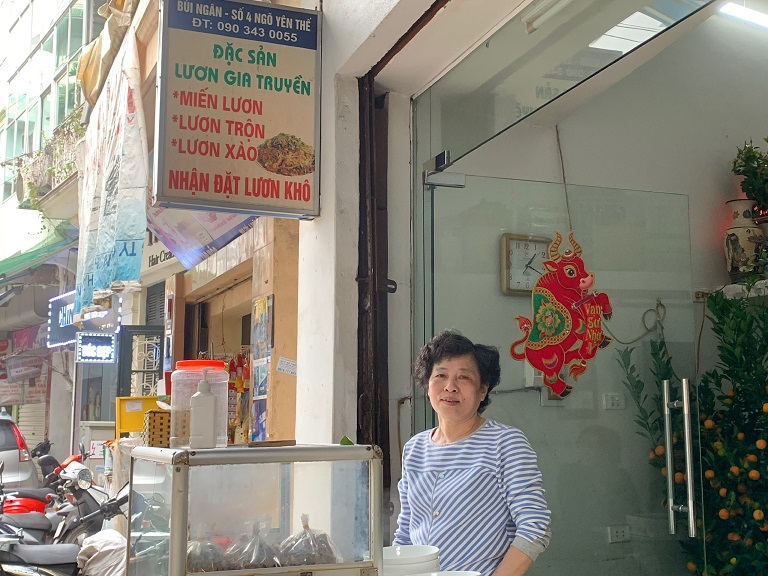 B: Today, we are recommending a Mien luon stall in Yen The alley, Nguyen Thai Hoc street in Hanoi for delicious eel glass noodle. The owner is Bui Thuy Ngan, who has been serving eel glass noodle for more than 20 years.